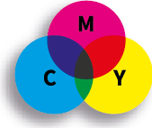• צבע מגנטה (Magenta) עם צהוב (Yellow) מפיק גוון אדום.
